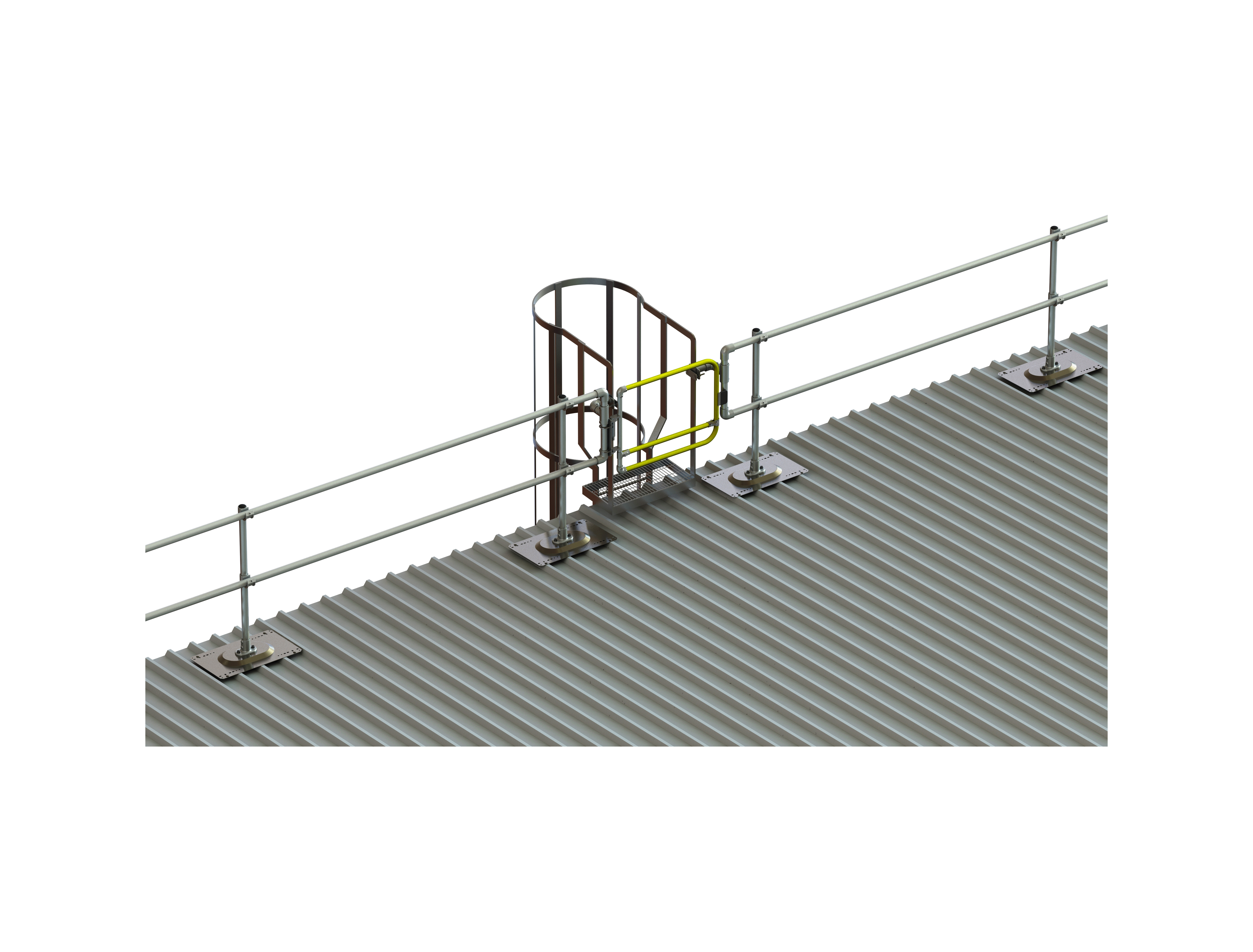 Zestaw barier ochronnych dla bezpiecznego wyjścia z drabiny Kee Guard® to rozwiązanie zabezpieczające przed upadkiem z wysokości. System został zaprojektowany w celu ochrony pracowników korzystających z drabiny stałej podczas wchodzenia i schodzenia z dachu w miejscach gdzie nie są zainstalowane wyłazy dachowe.