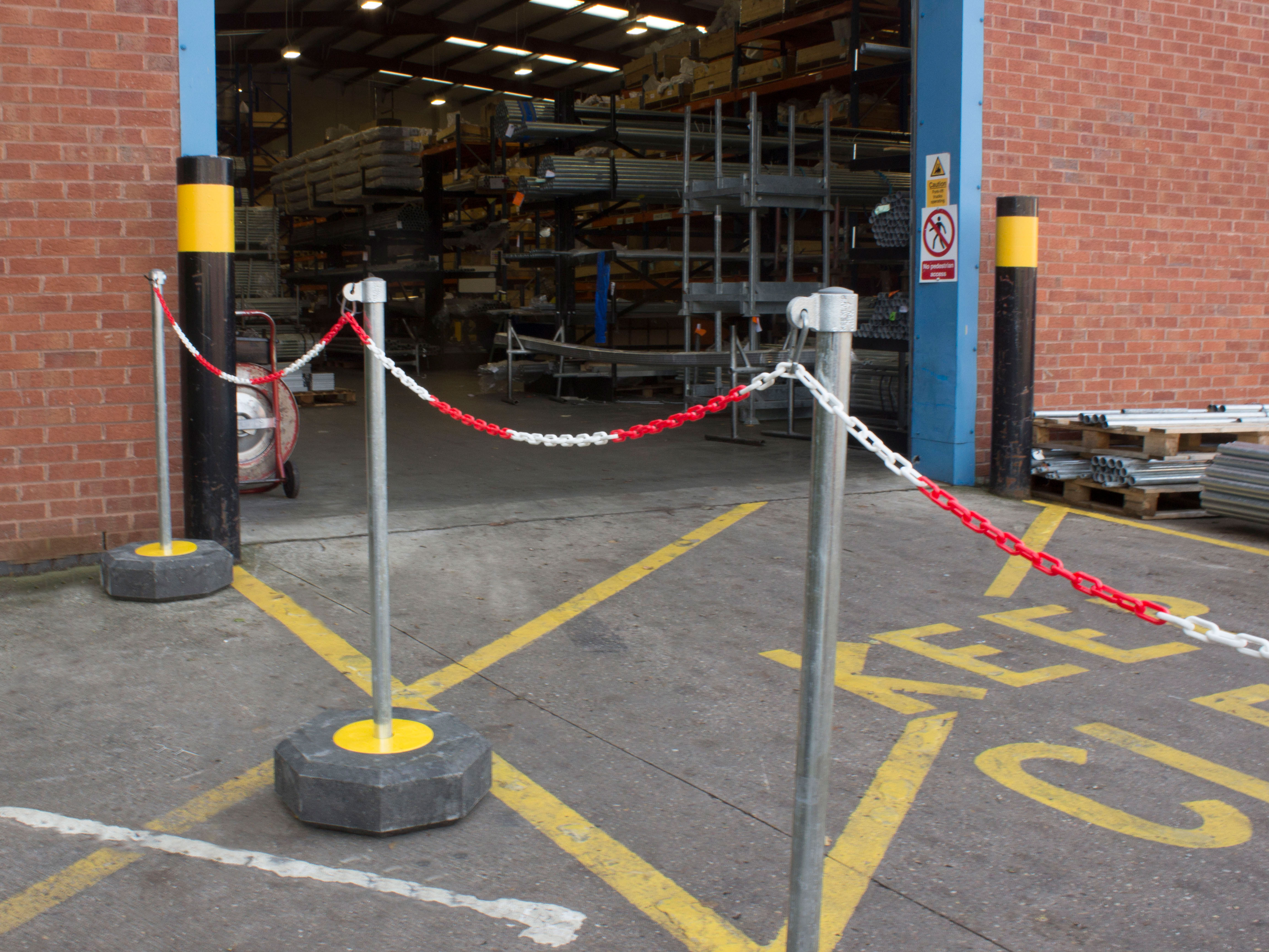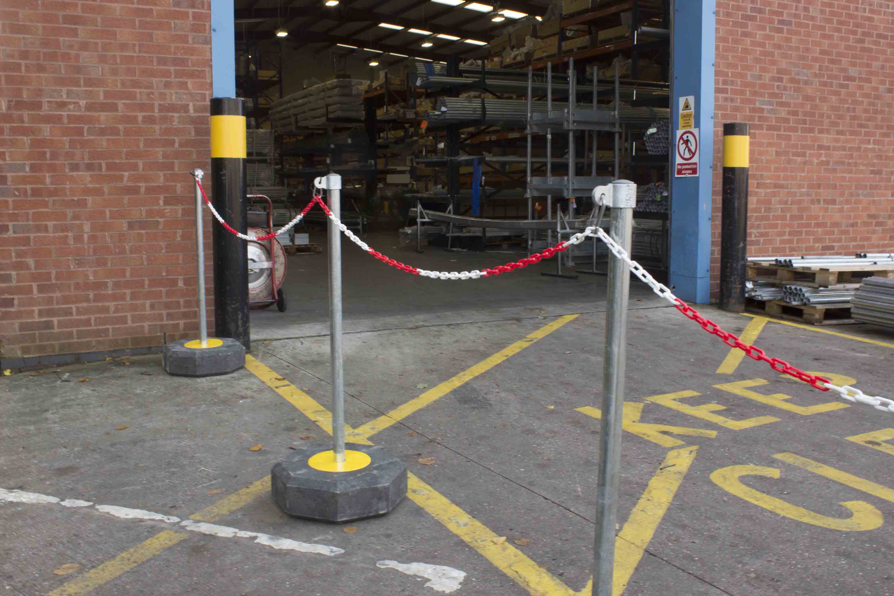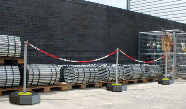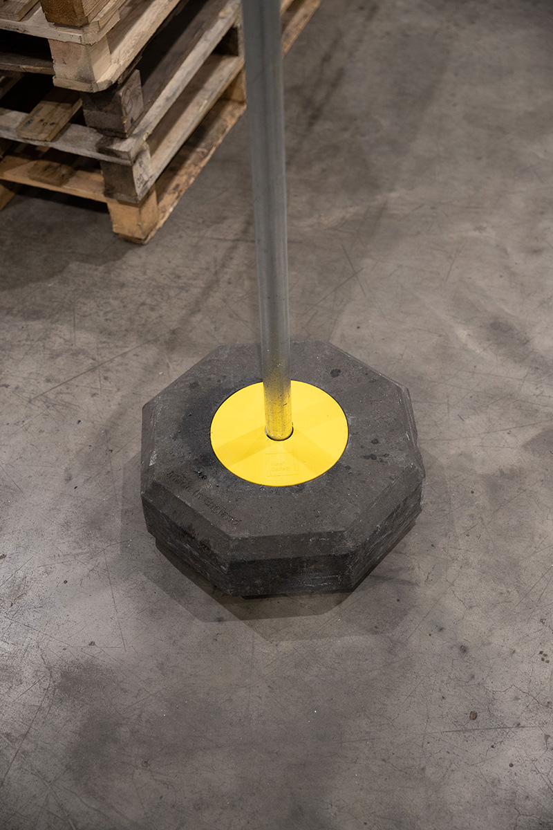 Trwałe galwanizowane elementy i słupki oraz wytrzymałe gumowe podstawy.